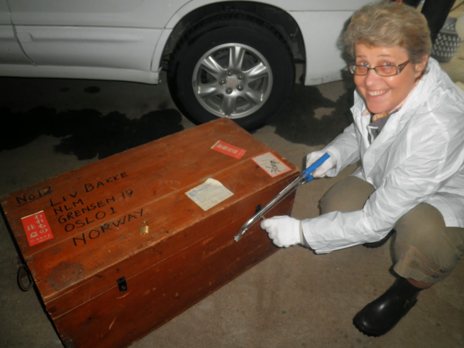 Denne dama fann ei kasse med sitt eige namn på, godt låst med to hengelåsar. I mangel på nøklar fungerer saga bra. Og dama, som sikkert vil vere anonym, er veldig spent på kva ho har oppbevart på lageret i omtrent ti år:
